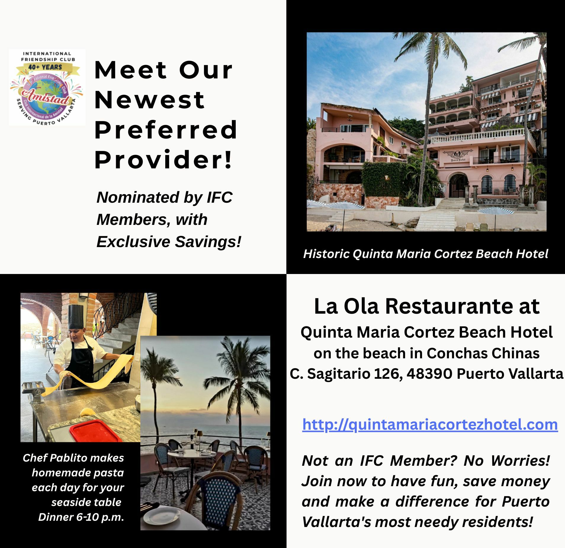 Join us as we celebrate the close of another wonderful IFC season at our Closing Brunch at the charming Le Bistro. Enjoy elegant riverside dining surrounded by nature, savor refined Mexican cuisine with a French flair, and raise a glass to friendships old and new in one of Vallarta’s most beautiful settings. Entertainment to be announced. Don’t wait to register —once it’s full, it’s full. Register Here. |
